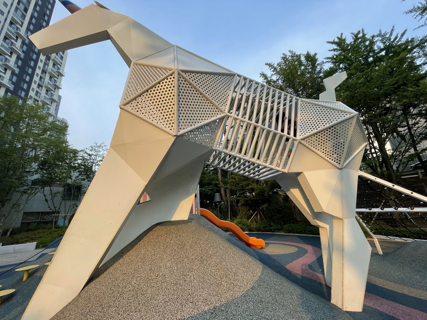 遊び環境を施設として区分する固定的な思考から、遊びを行為と理解し、遊び行為が日常の都市に包容されるよう総体的な環境をデザインする考え方は、韓国の団地のように一体的に開発される大規模な敷地では実験的な配置が容易である。大規模な団地の敷地は色々な用途施設が密集して、完結した都市形態を持つため、過去のアーバニストたちの理想を実現できる可能性がある。